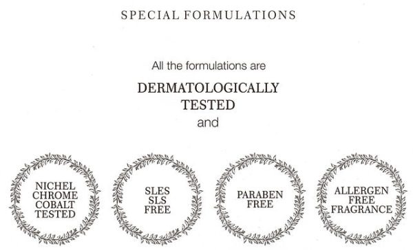 Dermatološki testirano na nikal, krom, kobalt. Bez SLES, SLS. Bez parabena.